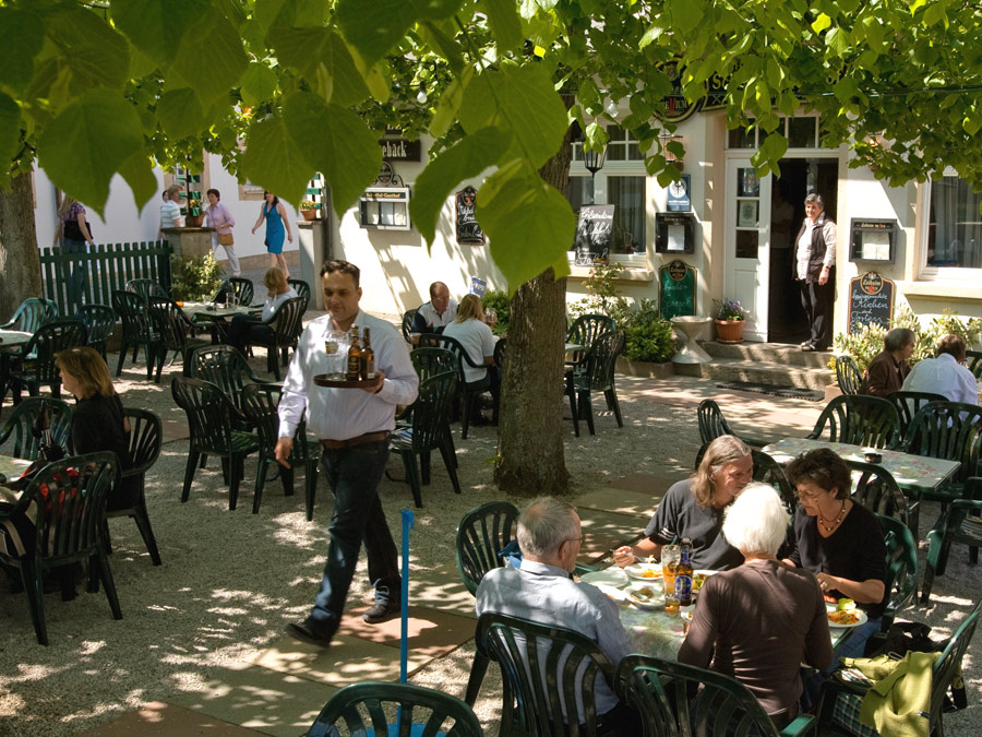 Ein frisch gezapftes, kühles Bier nach einer Wanderung oder Fahrradtour, gemütlich eine Tasse Kaffee trinken – unser Bier- und Cafégarten lädt dazu ein. Zur schönsten Jahreszeit sitzen Sie hier unter großen Linden mit Blick auf die Basilika.
